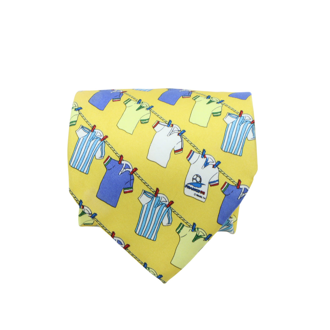 France 98 Cravatta Vintage Gialla con Fantasia in Seta Uomo
