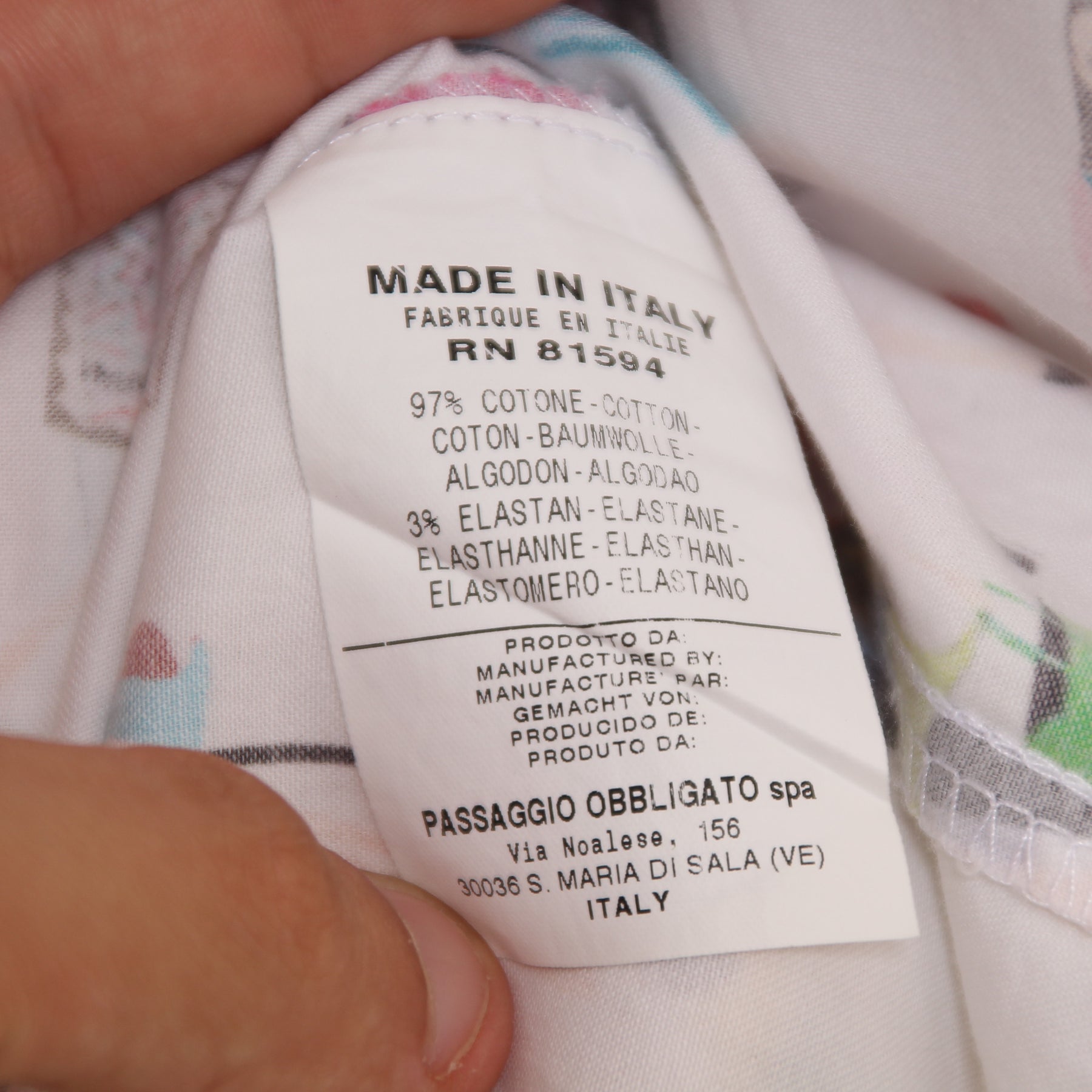 Tessuto: 97% cotone 3% Elastane